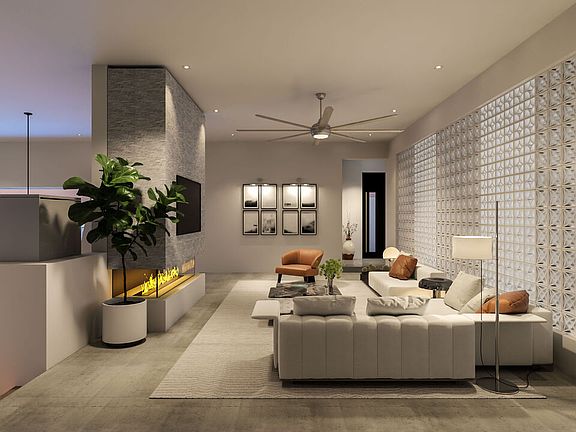 New construction- Estimated delivery 2023. Timeless sophisticated designer property. Custom built in Palm Springs home.Walls of glass both in the kitchen and living area allow the interior and exterior to blend seamlessly. Master suite feature fireplace and soaking tub. Exterior included lap pool, sunken living room and fire pit. Classic design with modern material to signify the coming together of old and new. Images shown are not live images they are only renderings to show the intended design of the completed project.