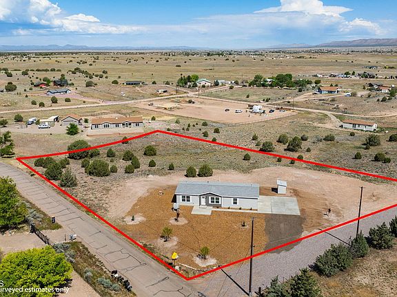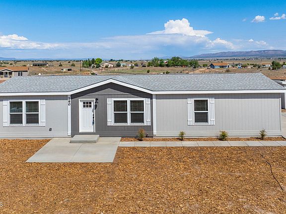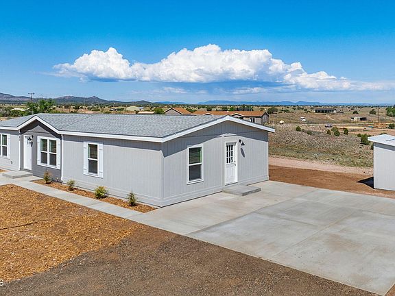 Wide open spaces and privacy abound at this 4 bedrooms, 2 bathroom, 1,580 square foot home on 2.09 acres situated in the heart of Paulden. Built in 2024, with paved road access, this home is rural living at its best and can be a stunning horse property with a high producing well! Engineered build ready garage pad has already been poured for a future 20x20 garage. The open concept of this home makes it airy and bright throughout. The kitchen is a perfect set up with an island and tons of storage. The master bedroom has an attached bath with a double vanity and walk in shower. The outdoor spaces are perfect for taking in the views and all that this great home has to offer. There is the option for RV parking and this land could be great for horses! Come see it today and make it your own!