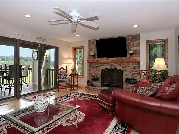 Contemporary elegance in design--sophisticated yet warm & cheerful with a sparkling interior describes this lakefront home with approx. 4200 sq. feet living space & central air. Dramatic foyer sets the stage for a custom kitchen with granite & stainless-steel appliances, center island & cozy breakfast nook. Hickory hard wood flooring flows throughout the main living areas & an open floor plan featuring lovely dry stacked stone fireplace, a deck wrapping the length of the home & walls of glass for amazing lake views. The main master bedroom with private full bath opens to a lakeside deck and a second master bedroom with full bath opens to a private lakeside patio area. Two more guest bedrooms, an exercise room/gym, office, family room with fireplace, wet bar area add to this well appointed home. The perfect way to enjoy private Indian Lake with its pristine setting, phenomenal lake views from all four levels.