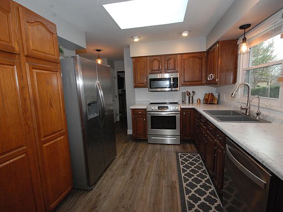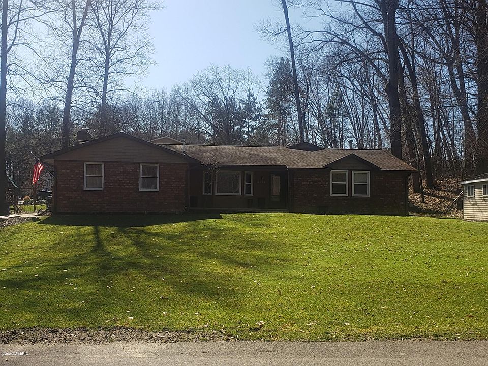 Large ranch home located in Listening Valley subdivision. This 2,500+ finished square foot, 4 bedroom, 2 bath home on large corner lot with mature trees. Main level boasts remodeled kitchen with new counters, backsplash, flooring and stainless appliances. Dining area has newer flooring and slider leading to screened in porch. Family room has newer flooring and fireplace with slider to deck. Living room has new carpet and large bay windows. Large master bedroom has new carpet and large walk in closet with private access to shared full bathroom. 2nd bath has been updated with new counter and backsplash. Lower level has 4th bedroom, large rec room with fireplace, laundry room, utility room, workbench plus additional storage. All this plus nearby park, close to highways, Caledonia schools.