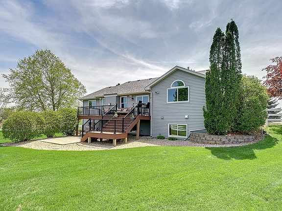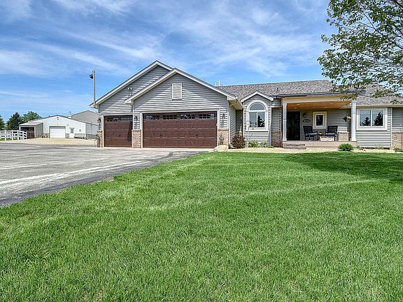 Beautiful turnkey rambler on 10 rolling acres with country views. Updated 4 bedroom, 4 bath home with vaulted ceilings; the updated primary suite opens to new deck. All new Anderson windows and doors, new furnace and water heater (both home and barn) and new air conditioner (all 2018). Lower-level family room with wet bar. 2 gas fireplaces. The heated barn has 5 stalls, tack room, and wash stall (hot water); hay storage in attached big barn & loft (large enough to pull a full hay wagon inside!) Pastures, dry lots and turnouts have dedicated shelters and Ritchie waterers. Extensive vinyl fencing. Everything's ready to move both you and your horses right in!