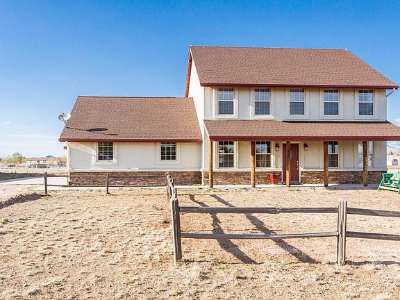Gorgeous custom home on 2 acres in Antelope Meadows boasts panoramic mountain views, fenced parcel and upfront location within Antelope Meadows making for easy commute to downtown Prescott Valley! Upgrades and features include open & spacious great room concept, beautiful wood flooring, large formal dining room (or office) as well as breakfast bay off kitchen, powder bath, fresh interior paint and wood blinds! Spacious kitchen offers island, solid surface counters, beautiful maple cabinetry, gas range & large pantry! All bedrooms on second level (split plan configuration) plus bonus/flex space & guest bathroom. Master suite offers large bedroom with fantastic views, dual vanity sink, large closet and separate tub and shower. Oversized 2.5 car garage, extended rear patio and walkway, generous storage shed, list goes on! NO FLOOD INSURANCE REQUIRED HERE!