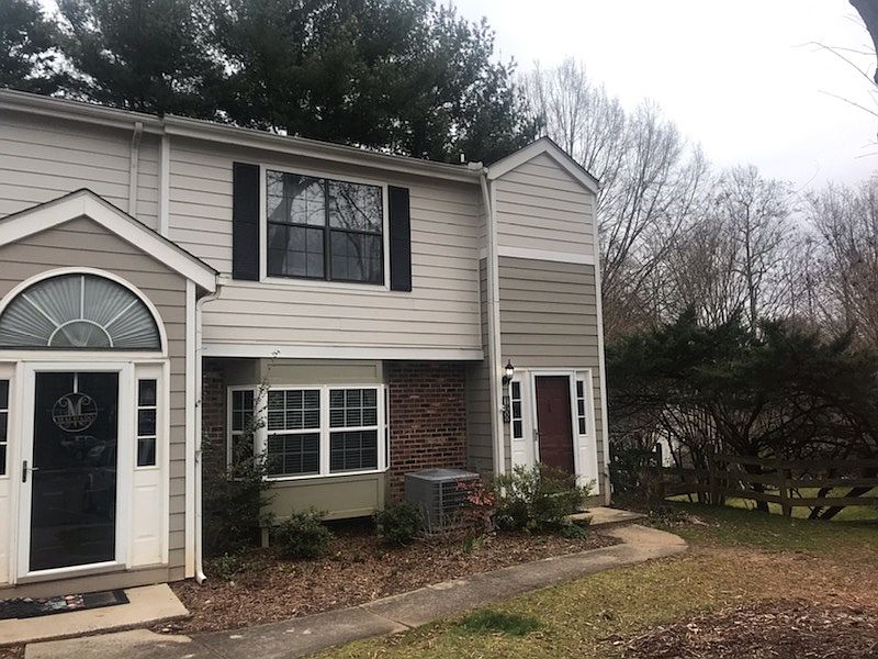 End unit condo on nicely wooded and private corner lot. 8 Foot ceilings on both levels. Laminate "wood" looking floors throughout main level. Solid surface counter tops, Maple cabinets, adorable window seat, glass tile back splash, and pantry in Kitchen. Breakfast area has sliding doors that lead out to patio and back yard. Laundry closet. 1/2 Bath on main floor. Carpeted, floating staircase to second level. Master and 2 additional bedrooms. Back patio with storage closet. Close to RDU and RTP.