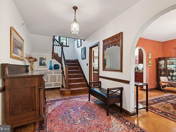 Welcome to 7900 Froebel Road in the desirable friendly community of Laverock. This lovely Tudor-style property exudes charm, character, and elegance, standing proudly on a corner lot surrounded by mature holly trees and beautiful plantings. Discover the impeccable Tudor craftsmanship and enhancements that define this home, while offering all modern amenities that make this perfect for today’s living. As you approach the property, take notice of the stunning bluestone steps and walkway leading to the charming and spacious covered front porch. Stepping through the custom-designed front door highlighted by hand-detailing and frame, you are welcomed by the spacious foyer boasting gorgeous plank-width pegged hardwood floors, an ample coat closet and a beautiful sun-filled turned staircase. Flanking the formal foyer are arched doorways to the grand living and dining rooms. The inviting formal living room boasts a stunning wood beam ceiling and an impressive stone mantle with a gas fireplace as its centerpiece. Just off the living room is a sun-filled family room with built-in bookshelves for reading enjoyment and relaxation. The distinguished dining room with an elegant bay window offers a marvelous space to celebrate special occasions. Moving into the kitchen you will discover a modern well-appointed haven for a culinary enthusiast that features high-end luxury appliances including a new 48” classic series Sub-Zero side-by-side refrigerator-freezer and vast amounts of beautiful cabinetry, plus a center island with cooktop, granite countertops, and an adjacent butler’s pantry. Just off the kitchen, you will find a tucked-away home office and private powder room. Stepping outside from the kitchen you will find yourself in a backyard oasis, ideal for al fresco dining and savoring summer evenings on the inviting slate and stone patio, surrounded by fenced curated gardens creating an idyllic setting. Ascending to the second level you will encounter the spacious owner's suite with a redesigned en-suite bathroom with many modern conveniences, including a double-sink vanity, a glass-surround shower with modern fixtures and heated tile flooring. The bedroom’s expanded walk-in closet provides ample storage space for your wardrobe essentials and a large linen closet. The bedroom also leads to a large cedar closet for extra storage. Completing this level are two additional bedrooms, a hall bathroom with a whirlpool tub and the convenience of a second-floor laundry room. The full basement is spacious and houses an updated zoned boiler system (2018) and an expansion tank for heater/hot water (2023). The attic contains a full-house central air conditioning system (2023). The basement also provides access to a two-car garage with a new insulated garage door (2023) that opens to an expanded driveway bordered by beautiful stone garden walls and steps to the outdoor garden patio. You will appreciate the recently professionally painted exterior surfaces and trim of this truly beautiful home. The location is ideally suited for convenient access to shops and restaurants of Chestnut Hill, Center City Philadelphia, and Rtes. 309 and PA Turnpike, the charming community of Glenside and the Keswick Theater, the Philadelphia Cricket Club, La Salle College High School, Germantown Academy, Springside Chestnut Hill Academy, Arcadia College and nearby Septa stations. Come visit and fall in love!!!