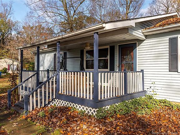 RARE FIND and WON'T LAST LONG! One owner home, Lanesville (Floyd County/NAFC Schools) but a rocks throw to the Harrison County line (bus runs to Reinhardt Rd). Buyer must verify schools. Wooded lot with a 2 car detached garage including 100 amp electric and concrete floor. 3BR/2BA vinyl sided ranch with a huge kitchen complete with an abundance of cabinetry, desk area, breakfast bar, and the stove and dishwasher are included. There is a large dining area with patio door to the rear for easy access to the pool pad/deck. Above ground pool was in need of replacement and removed and is not included. Master bedroom features a jetted tub and walk in closet, laundry room is just outside of the master. There are many recent updates such as furnace and AC approx 2-3 yrs, water heater and all new windows approx 5y yrs, rear of roof has been replaced and most of the flooring has been upgraded to easy maintenance laminate. Sq ft & rm sz approx.