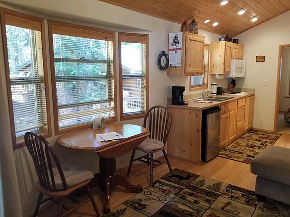 Sweet little cabin at Hyatt Lake Resort/Camper's Cove! Looking for a getaway in the woods by Hyatt Lake/possible vacation rental? This is the perfect place featuring 1 bedroom/1 bath, nice deck with hot tub to enjoy after a day on the lake or cross country skiing! Sit on your front deck for your morning coffee and watch the wildlife as this particular cabin sits at the back of the park so it backs up to the woods. Oh and it comes fully furnished so all you have to do is pack a bag, drive up to the lake and relax!