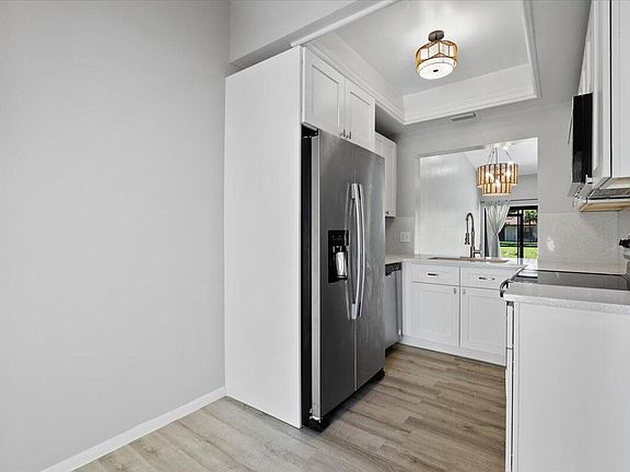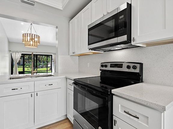 Live in effortless luxury with this stunning, fully-renovated 2-bedroom, 2-bathroom corner townhome that can easily be converted to a 3 bedroom if needed! Come indulge in brand new finishes throughout, featuring beautiful luxury vinyl flooring, sleek kitchen cabinets with stunning quartz countertops, and top-of-the-line stainless steel appliances. Unwind in your spa-like master suite with a walk-in shower, updated vanity, which has ample storage. This unit has breathtaking lake views and adds a touch of serenity to your everyday life, while the single-story design ensures effortless living. Don't miss out on this opportunity - schedule a showing today and experience the perfect blend of comfort, convenience, and modern luxury! Enjoy the vibrant lifestyle of a thriving 55+ community.