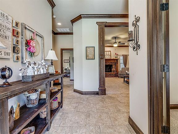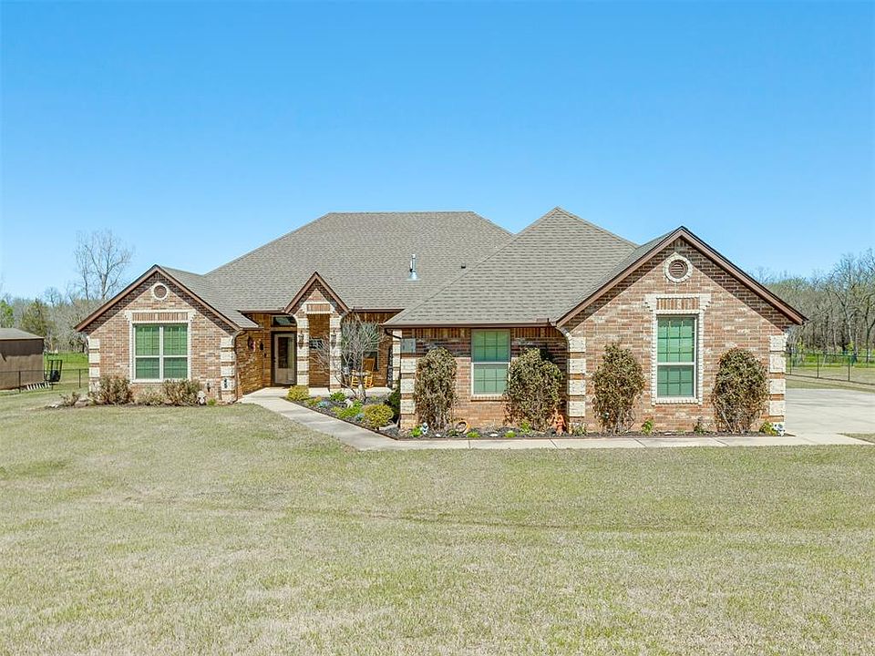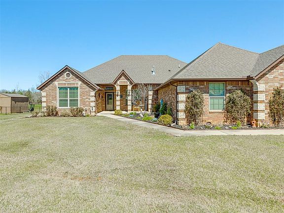 Welcome home to this charming brick beauty nestled on 1.48 acres in the sought-after Choctaw School District! As you approach, you'll be greeted by lovely landscaping adorning the front flower beds, setting the tone for the warmth and character that awaits inside. Through the front door you’ll discover stained wood crown molding throughout, adding a touch of elegance to each room. Cozy up by the beautiful brick fireplace in the living room, perfect for chilly evenings. The spacious kitchen is a dream for cooking, featuring granite countertops, an island with convenient drawer storage, and matching stainless steel appliances. The adjacent laundry room boasts granite countertops, a sink with a sprayer nozzle, and a mud area, making chores a breeze. Retreat to the primary bedroom with its tray ceiling and en-suite bathroom offering a double vanity, large whirlpool soaking tub, standing shower, and walk-in closet. Outside, the back patio beckons for gatherings and relaxation, with ample space for dining al fresco or cozying up around a firepit. Enjoy the expansive backyard and wooded area, providing a serene backdrop to your outdoor adventures. Don't miss out on this inviting retreat—schedule your showing today!
