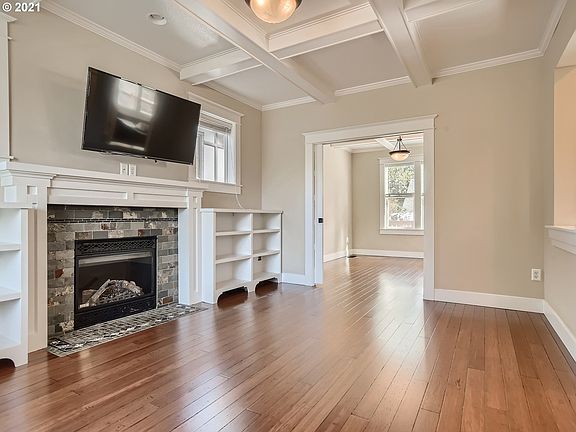 Old PDX Four Square in University Park/Portsmouth. 9' ceilings with exposed box beams. 4 bedrooms 3 and Half Baths. Finished basement suite has a bedroom + full bathroom with walk in shower. Bamboo flooring throughout the home. Full sized primary suite/bath has walk in shower with frameless glass, dual sink vanity and walk in closet. Large, open kitchen with quartz countertops and eating bar flows into the living areas. Tankless water heater, smart dual zone HVAC system. Home energy score 8!