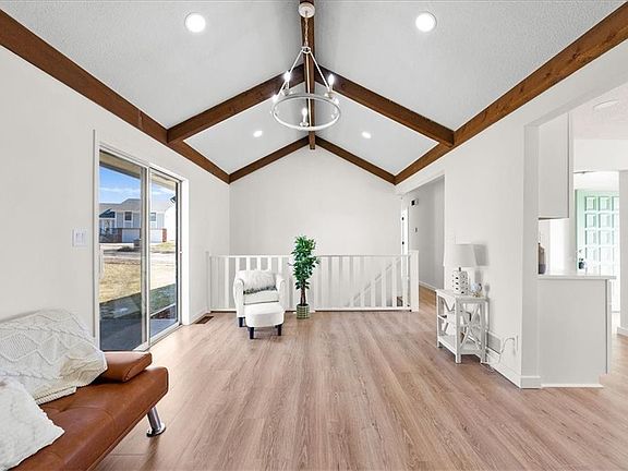 Welcome to this remarkably remodeled 3-bedroom, 2.5-bath raised ranch home, offering modern upgrades and timeless charm. Step inside to vaulted ceilings and an abundance of natural light, creating a bright and airy atmosphere. The open-concept living area features recessed lighting and a grande ceiling-to-floor fireplace, perfect for relaxing evenings.
