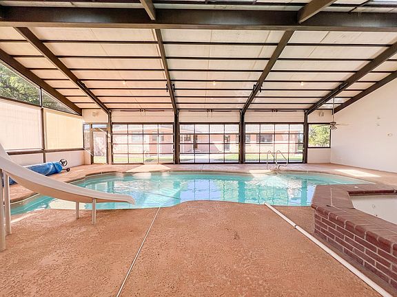 Versatile living and workplace just south of the Red River. Home, pool house and workshop on 1.98ac. Home offers updated kitchen w granite & motorized shades. Family room w ultimate entertaining cabinetry, island. Knotty pine office utility or 4th bdrm. Handicap-friendly. Primary w updated ensuite. Enclosed fiberglass pool w cool deck, glass garage doors & full bath. 2,400sf insulated workshop w 10x16' overhead door, exhaust fan. Large trees, metal wood-shake-look roof w metal eaves and adorable playhouse.