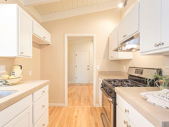 Beautiful Mid-Century Modern home in South Burlingame neighborhood. Stunning vaulted ceiling and big windows, providing a light and bright feel throughout. The kitchen & bathrooms have been fully updated & remodeled. Along w/ the gorgeous interior we see well-maintained hardwood floors throughout. Fully fenced private backyard w/ covered deck & a detached partially finished basement - fantastic for, an at-home office, studio, storage, etc! You do not want to miss this opportunity!