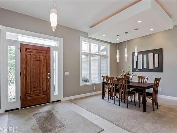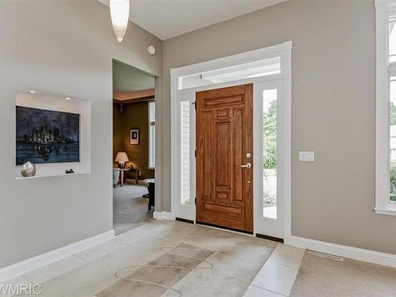Striking ranch, located In Woodspointe, a tucked away community just minutes from 28th street shopping and dining. This low maintenance home highlights many fine features including a large entry foyer, a 20 X 18 great room with a contemporary linear strip of fire gas fireplace and attractive built ins' to showcase your fine art collection. A formal dining room in an open floor plan features a unique lighted ceiling suspension. It has a main floor office, powder room and laundry. The kitchen has cherry cabinets and granite counters with center sink & snack bar seating for 4, stainless microwave and convection ovens, a vented hood fan & ceramic flooring. A southern exposure sun porch leads to the large deck with room for summer cookouts and views of the woods. A main floor master bedroom co