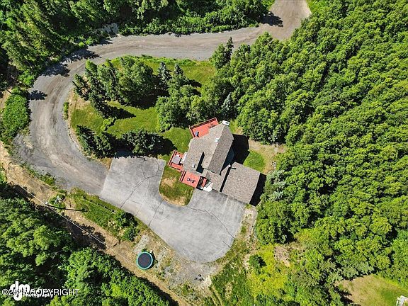 Bathed in natural light and surrounded by nearly two acres of natural landscape, this well-maintained hillside home offers comfort, privacy, and access to some of Anchorage's most beloved trails--with neighborhood entry to the Hillside Singletrack system just a short walk away and Chugach State Park beyond. The spacious kitchen is well-appointed with double ovens, a bread warmer, Sub-Zerofridge/freezer, generous counter space and cabinetry, a walk-in pantry, and two flexible dining or sitting areas that open onto large southwest-facing decks perfect for savoring long summer evenings. A wall of southwest-facing windows floods the formal living room with light, ideal for indoor plants and capturing winter warmth, anchored by a gas fireplace with a copper stovepipe and exposed beam bracket details. The entire top floor serves as a private primary suite, complete with a sitting room and balcony, a dressing room, a full bathroom with a soaker tub and shower, and a second walk-in closet. The lower level features a cozy family room, an oversized secondary bedroom with en suite bath and hot tub access, and shared access to an additional full bath with a sauna perfect for post-trail relaxation. A generous mudroom/laundry room connects to the oversized three-car garage, which includes a utility sink, workbench, and ample storage for outdoor gear. Recent updates include a new high-end roof (2022), exterior paint (2023), an HVAC-installed humidifier (2022), and ongoing care and maintenance throughout. With large southwest-facing windows and abundant natural light, the home is especially well-suited for houseplants and year-round comfort making the most of Alaska's long summer days and brief winter daylight. Nestled among mature Alaskan foliage with upland mountain and territorial views, this is a peaceful, adventure-ready home with space to live, explore, and thrive.