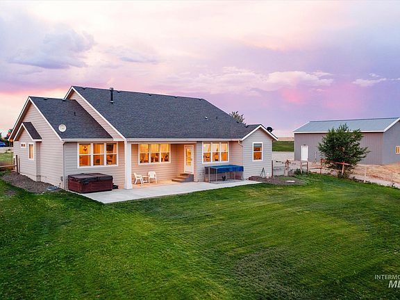 HUGE PRICE REDUCTION!! Custom-Built Acreage Retreat with Equestrian Amenities & Elegant Touches Thoughtfully crafted by Waltman Homes in 2017, this beautifully appointed 3-bedroom, 2-bath home rests on 5.03 acres of usable land. The open floor plan features a cozy propane fireplace, abundant natural light, and a stunning chef’s kitchen with double ovens, granite island, GE appliances, a farm sink, and walk-in pantry. The spacious primary suite includes a deep soaking tub, dual vanities, and walk-in shower. Outside, enjoy a 120x60 riding arena, barn with stalls, a 30x40 shop with power, Bullfrog spa, and 3-car garage. Solar water heating and home solar contribute to efficient living. Garden beds, mature landscaping, and a variety of fruit trees enhance the property’s charm. Custom blinds, recessed lighting, automatic sprinklers, and a Lorex security system complete the package. Please see Documents "D" Tab for a more thorough description. Thank you.