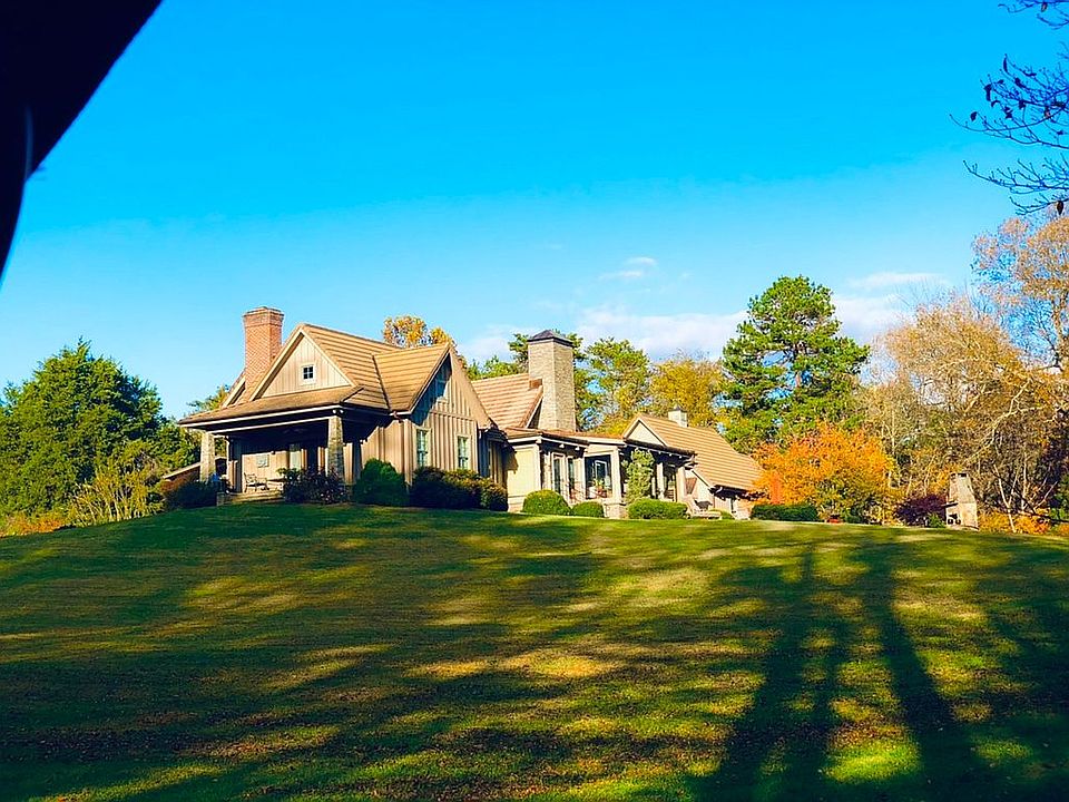 Western hemlock log. Copper guttering. Stack stoned fireplaces (4). Concrete tile roof. 200 year old yellow pine flooring. Kentucky blue sone in sun room. Outdoor stone and blue stone decks with fireplace. Barn with 2 stalls. Large metal building for tractors. Two ponds one stocked