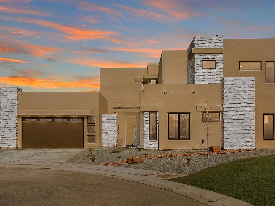 Newly constructed contemporary masterpiece, outfitted with architectural beauty, by Rhett Ashley Homes. Home features 3,374sf with 4 bedrooms, 3.5 baths, a loft and 3-car garage! Spacious living area with a beautiful floor to ceiling fireplace! Adjoining living and kitchen create a beautifully blended openness. Luxurious designer kitchen with sleek fixtures, custom cabinetry, quartz countertops, backsplash, built-in double oven, microwave, fridge, cooktop, range hood, island with seating. Two 1st floor guest rooms w/ jack & jill bath. Upstairs find the loft space with built-in wet bar and wine chiller! Primary suite w/ private deck showcasing stunning views and a spa-like bath. Bath host his/ hers sinks, custom vanity, a soaker tub, walk-in shower and closet! Covered patio w/ walled yard!