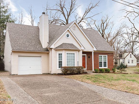 You will want to see this adorable Cape Cod located in Lyndon. This 3 bed, 2 bath home is conveniently just a mile away from Westport Village, and only minutes from many hot spots in east Louisville. Immediately upon entering you'll be struck by the beautiful bay window, the vaulted veiling, and cozy fireplace. The amount of natural light throughout the home is stunning. The owners suite is located on the first floor, with a bathroom that includes a large vanity and walk in closet. The second floor hosts the other two roomy bedrooms, as well as another full bathroom. The fenced in back yard has plenty of space for whatever your needs may be. Don't miss out on this listing, it won't last long!