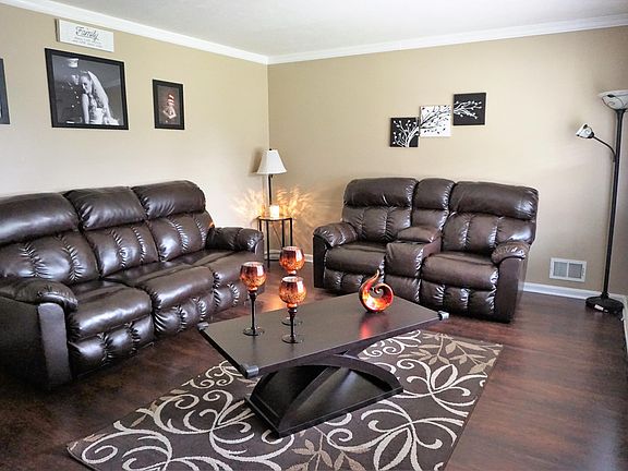 Welcome to this charming 3 bedroom 2.5 bath brick home. Nestled on a partial Culdesac. This home backs up to wooded acreage that gives you a great view and privacy. There is a spacious living room with a large picture window. New flooring throughout the main floor. A large eat in kitchen with tons of cabinets, stainless steel kitchen appliances and tile backsplash. The dining area in the kitchen features a large bay window, with scenic wooded view. The master bedroom features a private full bath with ceramic tile shower and floor. You will certainly enjoy the finished basement. There is plenty of room in this home to entertain friends and family. Super convenient location.