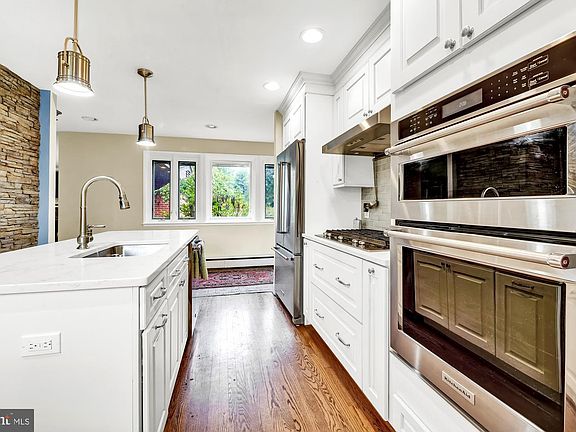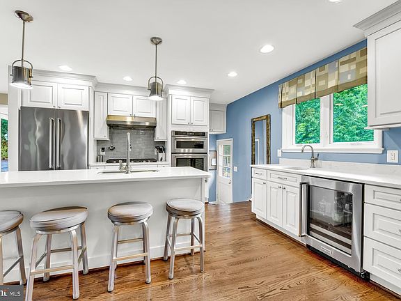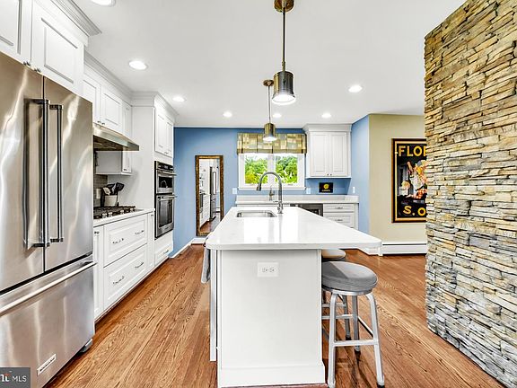 Expansive rancher located in a very private setting in Ruxton. Four generous sized bedrooms and three full bathrooms. The kitchen and two bathrooms have been completely updated. The open living room/dining room leads to newly renovated kitchen. The kitchen has been updated with quartz, stainless steel appliances, and a large island with a sink. The primary bedroom has a fireplace, built-ins and a full bathroom with a steam shower and double vanities. The rear enclosed porch looks out to patio and fenced in backyard.