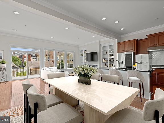 **The Offer Deadline is Monday, May 22nd, at noon** Stunning Mitchell & Best, end of row, townhome located in the amenity rich community of Maple Lawn. This City Home model boasts over 4,400 sq. ft. of luxurious living space with updates that include built in bookcases, Trex deck, hardwood and LVP flooring, and fresh interior paint throughout! Enter the sun filled open floor plan that includes living and dining areas highlighting gleaming hardwood flooring, a lighted wall niche, architectural columns, and a soothing color palette. Continue to the gourmet kitchen that features a large center island, sleek black countertops, stainless appliances that include an LG ThinQ refrigerator, dual wall ovens, and a gas cooktop, with a breakfast room. Enjoy entertaining in the bright and airy family room highlighting accent molding, and a gas fireplace in an elegant black stone setting, flanked by built-in bookshelves, and sliding door deck access. Ascend the staircase to the primary suite that includes a sitting room, walk-in closet, and en suite luxury bath with a soaking tub, dual vanities, and a glass enclosed shower with decorative tile inlay, and laundry room. Three sizable bedrooms, a full bath, and a spacious loft are located on the top level. The ground level has been updated with new LVP flooring and provides a recreation room, a flex room, full bath, storage space, and access to the garage. Enjoy outdoor living on the expansive Trex deck, and all the various community amenities that include a clubhouse, fitness room, swimming pool, sports courts, tot lot, and more!