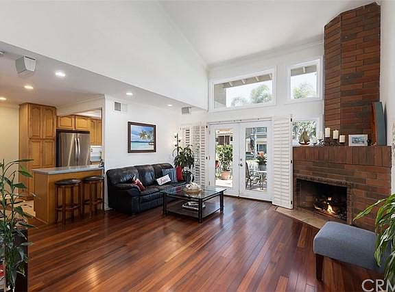 Walk to the sand, ocean, pier, downtown, Pacific City, Hyatt/Hilton, shops and restaurants from this serene gated community END UNIT townhome nestled deep in the quietest part of the neighborhood and surrounded by canal waterways, greenbelt and trees, and with a full driveway and 2-car garage! From its soaring ceilings to the hardwood cherry floor, you know this is the place youve been hoping for! Updated maple/Corian kitchen with water view (living room with fireplace and master suite have that view too!). Community has tennis, basketball court, pool, spa and dog park in addition to the ponds and security gate.
