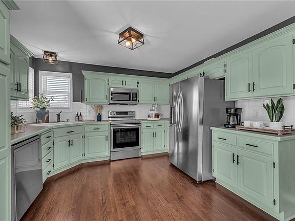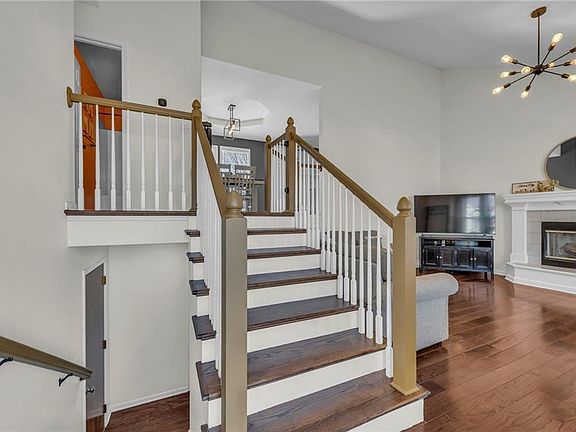 Welcome to this beautifully maintained front/back split home in the highly desirable Kellybrook neighborhood! Offering 3 spacious bedrooms, 2 full bathrooms, and a finished basement, this home is perfect for those seeking both comfort and functionality. Step inside to a bright and open living space with vaulted ceilings, a cozy fireplace, and large windows that fill the home with natural light. The kitchen floors were recently refinished while the stairs, primary bedroom, and one additional bedroom have all new hardwoods, adding a fresh and stylish touch to the home. The renovated kitchen features modern appliances, ample cabinetry, and a dining area that leads to a large deck—built in 2023—perfect for entertaining or relaxing. The primary suite offers a private retreat with his and her closets, and an en-suite bathroom with a jetted tub and separate shower. Two additional bedrooms provide plenty of space for family, guests, or a home office. The finished basement offers even more flexibility, whether you need a REC room, gym, or extra living space (4th non-conforming bedroom). Outside, enjoy the fenced-in backyard, ideal for pets or gatherings, while the 2-car garage provides convenience and storage. Plus, the front railing was newly built in 2023, adding to the home’s curb appeal. In-ground sprinkler system makes watering the lawn a breeze! Furnace & A/C new in 2024. Situated in the top-rated Liberty School District and close to parks, shopping, and dining, this home is a must-see! Don’t miss your chance—schedule your showing today!