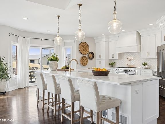 Welcome home to this timeless, well cared for, all brick ranch on RedTail Golf Course! Completely Remodeled, Offering 4 Bedrooms, 3 Full Baths, Sauna, Dry Bar, Rec Areas and Wine Cellar! Great function in this floor plan with easy entertaining areas from the moment you walk in! Lovely engaging with beautiful double door entry. This main level offers lovely hardwood floors, pottery barn lighting and a light and airy style that is modern with traditional touches. Plenty of space to enjoy with a tucked dining room with wainscotting. A lovely family room with warm fireplace and ceilings accent complete with additional seating area, perfect for any needs! The kitchen is the focal point with the largest island, perfect for serving, prep or eating at. Kitchen offers top of the line appliances, pot filler, lovely backsplash, upgraded cabinetry, beverage center and more! Opening from the kitchen is a beautiful deck with pergola that takes in private views of the 10th hole of Redtail Golf Course. Enjoy summer meals outside with peace and tranquility. Primary suite offers vaulted ceilings, backyard views and a spa like bath. Dual Vanity, water closet, soaker tub, large shower and walk in closet are found in this sanctuary. 2 auxiliary bedrooms are located in the opposite wing of the home the share a hall bath and are large, bright and have plenty of closet space. Laundry, mudroom has plenty of space for storage and housework with closet, sink, washer and dryer and folding area. A fully finished English basement provides more space to relax and entertain. A 4th bedroom is just beyond beautiful french doors and can double as an office. A large rec area has a dry bar, game area and a large movie center for nights in! A full bath with shower is additionally located in the basement. Finally, a few luxurious extras include a wine cellar and sauna! Your New Backyard Offers Trex Deck With Pergola, And Amazing Sunsets Overlooking Private Golf Course View. Want More? How About A New Furnace 2019, New Water Heater 2019, New Carpet 2020, Custom Storage In Garage, Tesla Charger Ready, No HOA Fees! All this a minutes from Crystal Lake and Downtown Areas!