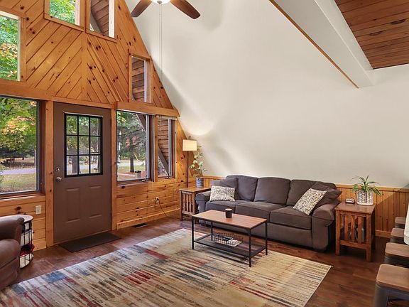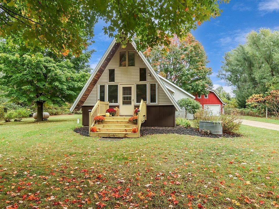Charming 2-bed, 1-bath chalet just west of Cadillac, nestled on one acre near Caberfae Peaks, state land, and trails. This cozy retreat boasts a partially finished basement for extra space and a spacious detached 2+car garage/barn with tons of storage for all your toys. Perfect for outdoor enthusiasts and nature lovers seeking a tranquil home with endless adventure opportunities. Don't miss your chance to make this chalet your year-round escape!
