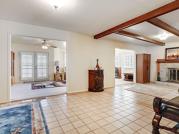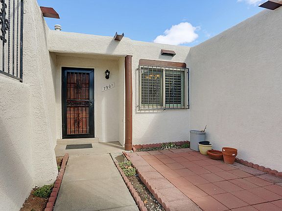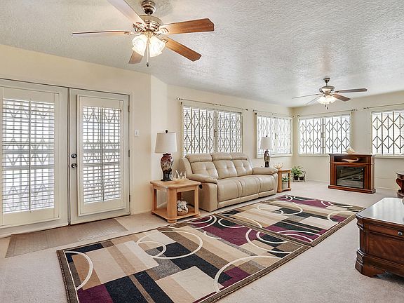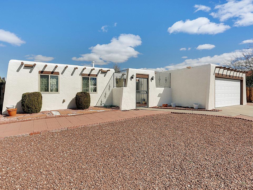 Amazing updated 3 bedroom home with enlarged kitchen, new stainless steel appliances, granite counters and plenty of new cabinet space. The updated master bedroom suite includes expanded bathroom with jetted tub & double sinks. Refrigerated air, newer windows, large family room, living room and siting area with brick fireplace. Huge backyard with 2 storage sheds, covered patio and amazing mountain views, courtyard entrance & security bars on windows. A 200 square foot patio is not included in the floor plan but add lots of extra living space. Close to shopping, schools, Paseo Del Norte and Whole Foods.