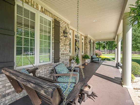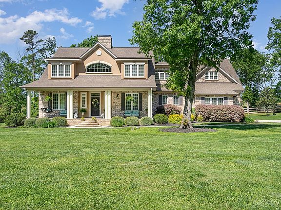 This charming piece of paradise has it all! A custom brick home nestled on almost 7 acres of an equestrian’s playground. A vaulted foyer welcomes you home. The living room, overlooking the patio and backyard, features wood, carpet and tile flooring, custom built ins, a oversized brick wood burning fireplace, and lots of natural light. Enjoy your morning coffee in the breakfast nook, or step out onto the screened porch it overlooks to get some fresh air. After you’re finished with coffee, step out onto the custom built deck and take a dip in the pool! The primary bedroom, complete with trey ceilings, is located on the main with a large primary bathroom and dual walk in closets. Take either staircase to discover a versatile bonus room and 3 additional secondary bedrooms. All kitchen appliances to convey. The property features a 6 stall barn with living quarters, Ramm fencing riding arena, and fenced pastures. Generator, UV water filtration system, and more!