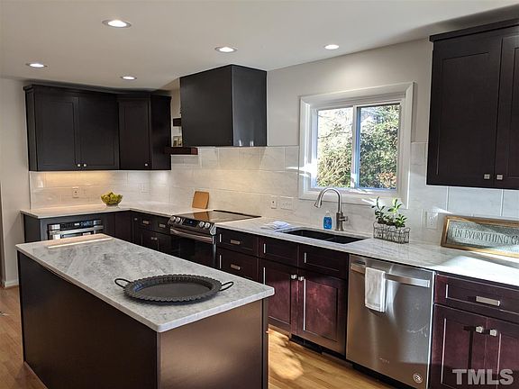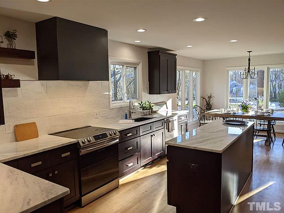 You will say "WOW!" to this ultra-cool contemporary! Completely remodeled with bold Modern Industrial styling. NOT a standard colonial! Not a typical ranch! Bold, trending style and thoughtful redesign. One of a kind hot-rolled steel fireplace sets the theme. All new fabulous kitchen with custom lighting, microwave drawer, and industrial hood. Stunning all new master bath with walk in closet. Rethink modern living in this neo-classic North Raleigh location. This is the one you have been waiting for!