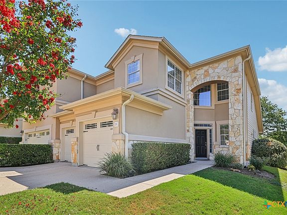 Elegant condo in the gated Sierra Vista community with soaring ceilings, abundant natural light, and beautiful wood and tile floors—no carpet. The open living and dining area features a cozy fireplace and graceful archways, while the updated kitchen offers newly installed quartz countertops, tile backsplash, and a farmhouse sink, like-new LG stainless steel appliances, and fresh finishes that give it a modern, polished look. The main-level primary suite boasts a spa-like bath with dual vanities, soaking tub, walk-in shower with privacy glass, and a custom walk-in closet. Upstairs includes two spacious bedrooms with walk-in closets, a flex room, an office, or even your own exercise room! Enjoy a private terraced porch overlooking a peaceful wooded greenbelt—perfect for relaxing or entertaining. Only one mile to Lantana Place with a movie theatre, restaurants, coffee, and more, and just 15 minutes to downtown Austin!