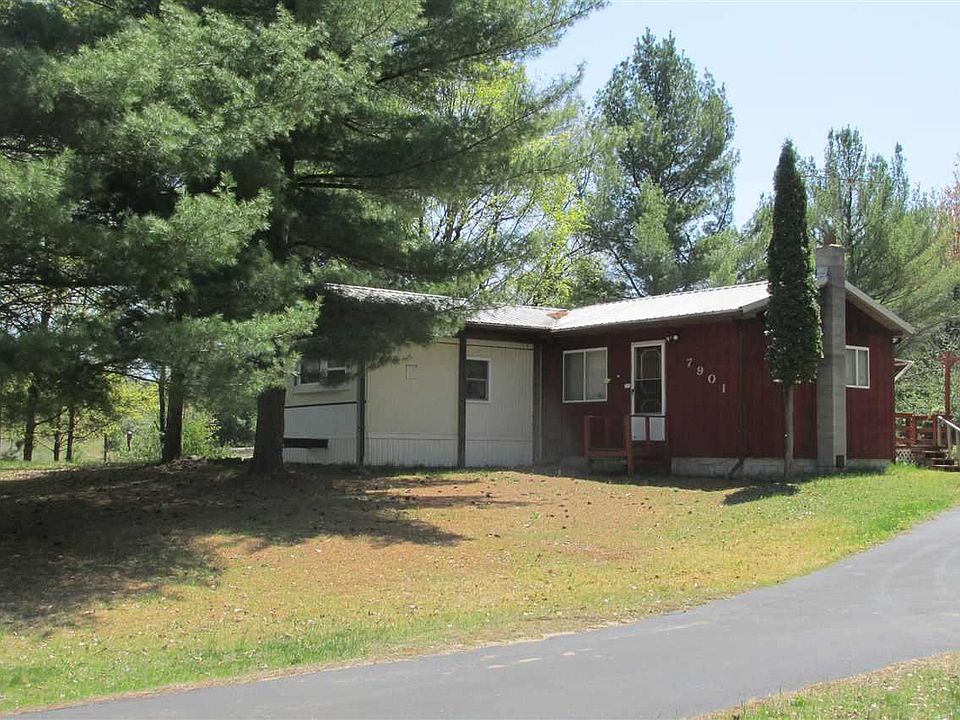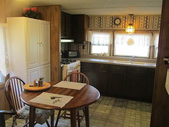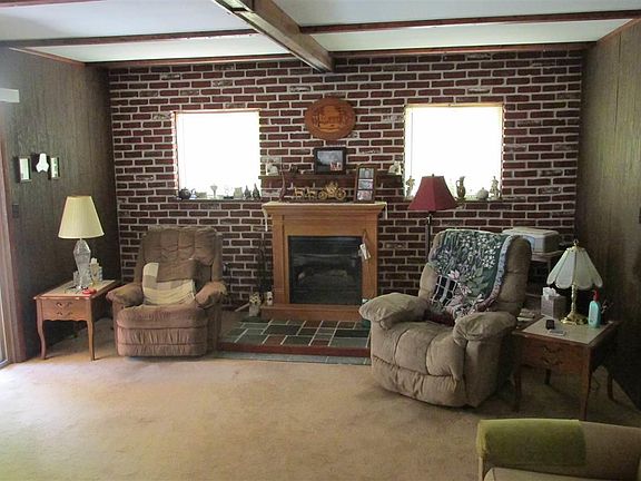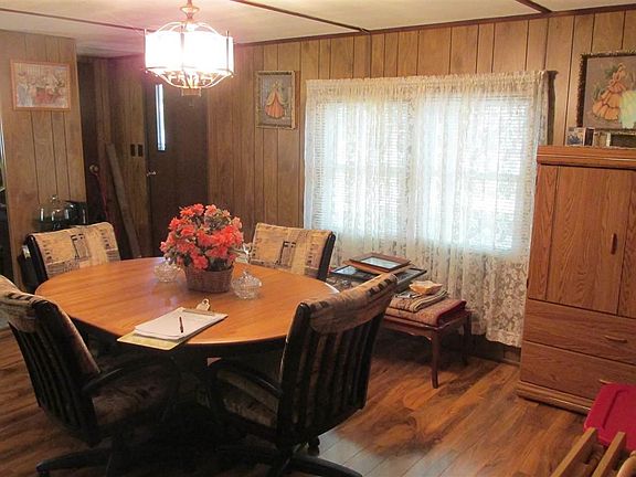 2 bedroom, one bath single wide with a large add on living room. the well maintained home has a gas fireplace in the 15 x 20 living room addition. Newer appliances, flooring and ceiling in the dining room. 14 x 16 wooded deck with a sunsetter awning will give you a place to relax and enjoy the wooded 10 acres. The detached garage ( 24 x 32) has concrete flooring and power. Great place for your work area. Paved driveway and two sheds add to the home.