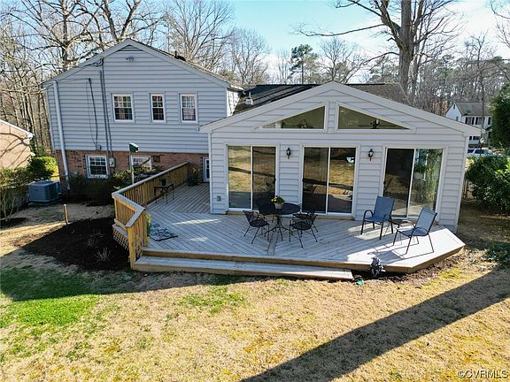 Wonderful Tri-level in highly sought after Riohondo Hills and the Parham/Three Chopt area. This beautiful home fronts the back entrance to Cheswick Park and all if has to offer. Once you enter this beautiful home you will see the NEWLY refinished wood floors in the foyer, living room, dining room, upstairs hall and all three bedrooms. The living room is large and opens into the dining room. The dining room is open to both the kitchen and the Florida Room. The florida room is incredible and has all NEW luxury vinyl plank floors, cathedral ceiling and skylights and opens to the newer deck. The kitchen has nice wood cabinets and NEW luxury vinyl planks, while still offering new owners to bring their signature to the details of this room. The 2nd floor has the primary bedroom with its own ensuite and walk-in shower. Two additional bedrooms and a large hall bath finish the 2nd level. The basement has a very large family room with wood paneling and a wood burning fireplace with built-ins. In addition, there is a LARGE utility/work room that includes built in cabinets, laundry sink and counter. A 2-car detached OVERSIZED is terrific. NEW Heat Pump 2022, replacement vinyl windows