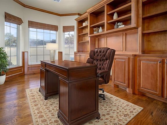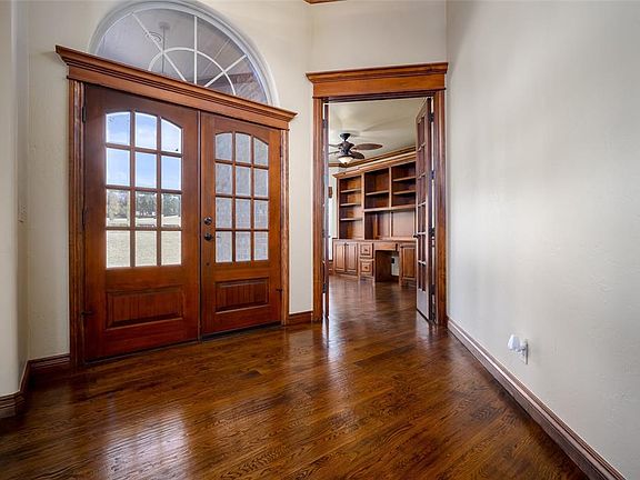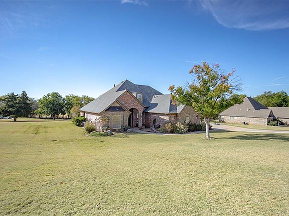 This stunning property in Edmond, Oklahoma, offers 3,622 square feet of elegant living space situated on a generous 1.43-acre lot. It features 4 spacious bedrooms, 3 full bathrooms, and 2 half bathrooms, thoughtfully designed for both comfort and functionality. The home includes a variety of well-appointed spaces, such as a study with built-in bookcases and a desk, a versatile bonus room that could serve as a game room or additional living area, a formal dining room, a dinette, and a large kitchen perfect for entertaining. The kitchen boasts stainless steel double ovens, a cooktop, a wine refrigerator, a dishwasher, and a large center island with ample storage. A walk-in pantry, a large breakfast bar adorned with beautiful pendant lighting, and plenty of seating complete this culinary space. The home is adorned with beautiful wood floors, enhancing the expansive feel of its large rooms. The primary bedroom is a serene retreat with a recessed ceiling and private access to the back porch, while the secondary bedrooms are situated on the opposite side of the house for added privacy. Two of these bedrooms share a Jack-and-Jill bathroom, while the third bedroom has its own en-suite bathroom. The large bonus room upstairs includes a half bathroom and offers flexibility for various uses. Outside, the large covered back porch features a natural brick fireplace, an outdoor grill, and a refrigerator, making it an ideal space for outdoor entertaining. The porch overlooks an expansive yard dotted with trees, offering plenty of room for a potential pool. Additional features include a 3-car garage, a tankless hot water heater, and an underground sprinkler system, ensuring modern convenience and efficiency. Conveniently located in East Edmond, the home provides easy access to Route 66 and I-35 for commuting and is close to Arcadia Lake, bike trails, Redbud Elementary, as well as shopping and entertainment options. Schedule your showing today!