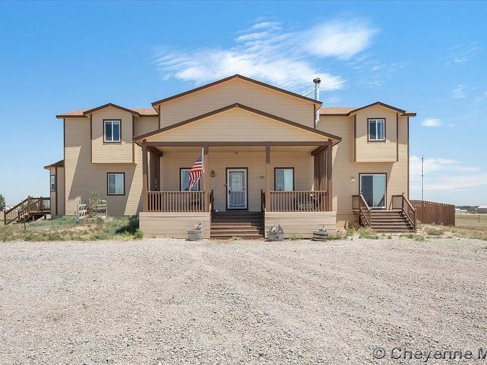 **Overview:** Newly listed and beckoning for its new owners, this captivating 6,000 square-foot, two-story residence combines comfort, luxury, and the peace of vast open spaces. Located on 4.23 acres, this property promises a lifestyle of tranquility and convenience in the scenic outskirts of Cheyenne. (close-in) **Interior Features:** The heart of the home is undoubtedly its expansive kitchen, featuring a whopping 4-inch thick granite countertop, matched with stainless steel appliances that will ignite the gourmet chef in you. Whether it’s a Sunday brunch or a feast, the sprawling island and abundant cabinets coupled with a walk-in pantry ensure you're well-prepped and organized. Vaulted ceilings amplify the airy ambiance, while fresh paint inside and out adds a touch of newness to every corner. The home offers three generously sized bedrooms, each boasting the luxury of separate ensuites and walk-in closets – say goodbye to morning traffic jams! Not to be missed is the main floor primary suite, a true retreat with an amazing closet space and an opulently appointed bathroom and private deck. **Essential Updates:** We heard you dislike the old and adore the new! The property comes equipped with a new paint, water heater, furnace, AC unit and much more – ensuring year-round comfort with a touch of fresh efficiency. **Outdoor Living:** Embrace the Wyoming sun on any of the five decks that offer stunning views and ample space for entertainment or quiet contemplation. The surrounding mature trees provide a serene backdrop and a hint of privacy, making it an ideal setting for both morning coffees and evening soirees. **Location Perks:** Located just minutes from essential amenities, this home enjoys close proximity to FE Warren AFB, about 2.9 miles away. Also located less then 1 mile from I-80. **Conclusion:** This home isn’t just a place to live; it’s a lifestyle waiting to be embraced. With all the ‘new’ updates and no corners cut on comfort, it’s a rare gem that continues to give. The expansive space both inside and out assures a balanced life, close to nature yet never far from everyday necessities. Knock, knock. That’s opportunity at your door! Don’t hesitate. Come see why 7902 Cox Rd should be your new address. Let’s schedule your private showing and start the journey to not just a new house, but a new home. Call today!