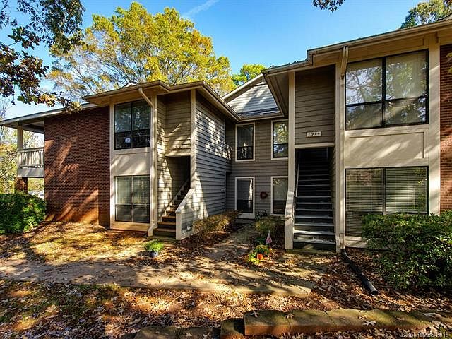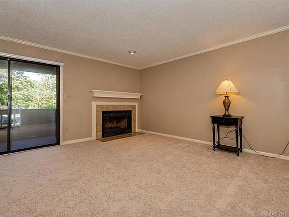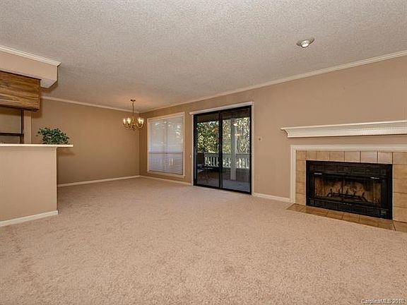 Hard to find one story condo on ground level nestled in small wooded complex in Raintree backing to golf course. Brand new carpet and some fresh paint for move in ready. Wood burning fireplace in GR. Sliding glass door to enclosed and covered patio. Kitchen has engineered wood floor black and stainless appliances. Breakfast nook. Community pool. Water and Sewer included in HOA dues, no rental cap. Opportunity to join Raintree Country Club w initiation fee waived.