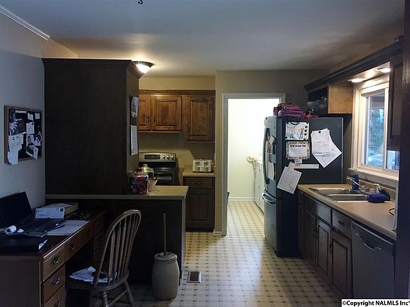 Great buy on a nice brick home with new windows throughout, hardwood floors, open kitchen, dining area and a two car carport/workshop. Go fishing in Cotaco creek that runs through the back of the property or let your cows and/or horses out to the fenced pasture. Enjoy the views of mountains from the front porch or back covered patio of this full brick home. Easy access to Huntsville, Decatur, Hartselle and Eva. Call to view this property today!