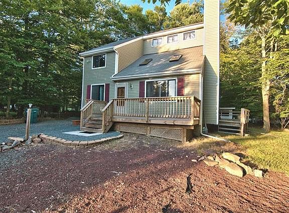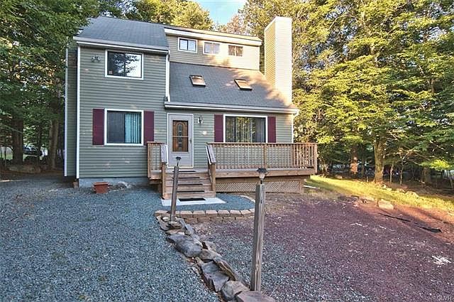 Cozy Contemporary Style Home With 3 Bedrooms, 2 Full Bathrooms & Open Concept Floorplan! The Second Floor Master Bedroom Offers Walk-In Closet & Access To Full Bath w/ Soaking Tub & Skylight Accent! Multi-Purpose Loft May Serve As A Possible 4th Sleeping Area, Office, Or Den & Overlooks Living Room Featuring Brick Faced Woodburning Fireplace. Public Water & Community Central Sewer. Flat Lot Offers Front & Rear Decks & Storage Sheds. Cul-De-Sac Location Situated In Amenity Filled Community Close To Pocono Area Attractions & Conveniences. This Affordable, Well Cared-For Home Has Taxes Less Then $3,500/Year & Is Waiting For You To Make It Yours!