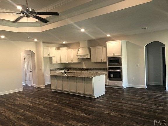 Gated Entrances, Rolling hills, large oaks, swimming pool and pavilion are a few of the enhancements that will make Vintage Creek a premiere exclusive community. The McKenzie (5 Bedrooms/3 Baths) is a best seller due to the 9 ft. ceilings, separation of bedrooms from the master and a very open layout from the kitchen through the dining to the family room. Crown molding enhances the trey top ceilings in the dining room, foyer, and the in the Master suite. This home features a spacious 11 X 23 back porch built into the home. Counter tops are Granite throughout the home Foyer, Living & Dining Room, kitchen and halls will be all wood look flooring for an impeccable look throughout the open floor plan. The Master has a large walk-in closet as well as Linen closet. Bedrooms 2&3 and 4&5 are quite spacious with a full bath just steps away. A study is located across from dining in the front of the home with a large window view. All electric 50 Gallon water heater and efficient heating and cooling system. ****Just 2 miles from the New Perdido River Boat Ramp with access to the Bay. And just 3 miles from the Navy Federal HQ**** Hurricane Window Protection provided.