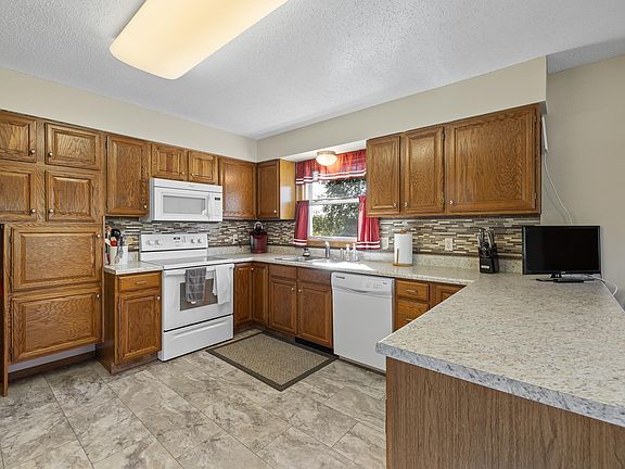 Listed by Shauna Sheets, KWBH, 605-545-5430. Split foyer home with recent updates in a PRIME west Rapid City location! *Nestled on .62 acres, this home offers 4 bedrooms, 2.5 bathrooms, and 2,242 SqFt *Spacious entryway welcomes you in and gives easy access to both levels of this home *Comfortable living room with newer flooring and a large picture window overlooking the beautiful back yard *Dining area and kitchen on back side of the home makes meal prep and service a breeze *'U' shaped kitchen offers a large amount of storage and counter space, a window above the sink for added light and a tile backsplash *Primary bedroom on the main level with extra storage/office space and attached 1/2 bath *Reconfigured basement level layout added a 4th bedroom and dry bar area for entertaining *Abundant storage space, a large mechanical room and 2 additional bedrooms with large windows complete this level *The raised back deck has been expanded across the back of the home, offering great space to entertain *Bonus concrete pad off the garage, great for a firepit area or extra seating space *Spacious attached 3-stall garage with workshop *Extra parking space for boat or camper *Large gently sloping lot- great space to expand.