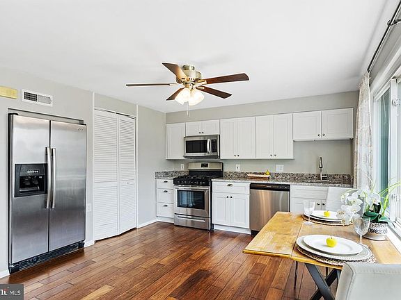 Welcome Home! Beautiful and cozy townhome awaits. Spacious and inviting living room boasts with brand new exotic hardwood floors leading into a brand new white shaker-style kitchen, gorgeous Bianco Antico granite, stainless steel appliances, a custom picture window and a walk out to the backyard. Second floor offers three spacious bedrooms with brand new carpet and a sizable bathroom. Brand New HVAC system and water heater will give you peace of mind for many years to come. The home is located on a quiet street, close to downtown, Bayview Hospital and 695.
