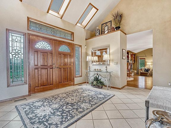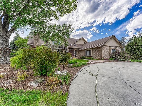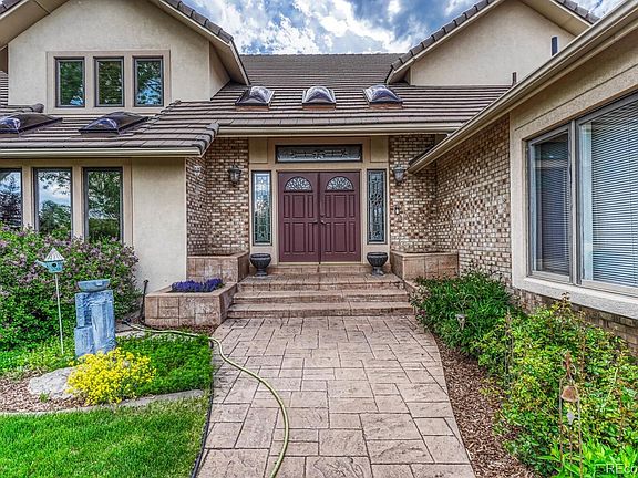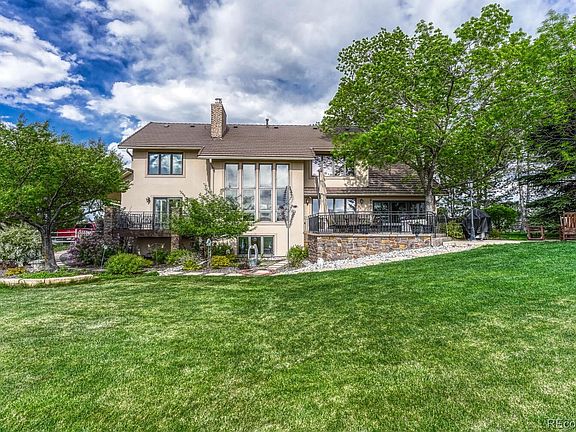 RARE OPPORTUNITY to own this stunning home on acreage in the Charter Oaks Community.! Only minutes away from shops, restaurants, and easy access to I 25! As you enter the concrete driveway, professional landscaping surrounds this house with 360° views and sunsets. Renovations throughout with so many professional upgrades, including a main floor primary suite with a stunning stone fireplace w/remote and mountain views being the first sight to see when waking up. The bath has heated flooring, custom Crystal cabinetry, soaking freestanding tub, and a spacious walk-in closet. A dream kitchen anyone would wish for with top-of-the-line appliances (Wolf), gas stove, double oven (Sub zero) fridge/freezer, (Miele)dishwasher, instant hot water, (RO) filtration water system and so many more features that you have to see in person! Including quartz countertops and large kitchen island with an additional prep sink. The main floor includes an office/den with custom built-in cabinets that opens to great room adjacent to the sunroom. Downstairs is completely finished with a newly renovated bath with a steam shower, theater room area with wine closet, and an open area for a workout room. Upstairs has three additional bedrooms with one connecting bathroom and walk-in closet and all bathrooms are newly renovated as well. The backyard is a dream place to entertain with a custom gas grill, fire pit nestled under trees, low maintenance decks with one being a private off-the primary bedroom with stone retaining walls/walkways giving you easy access around the property. Lots of mature trees, perennials, and a location that cant be beat! Don't miss this opportunity to call this your home!