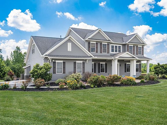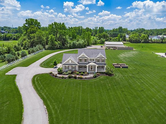 Nestled on a serene 5-acre parcel in the coveted Hilliard school district, this 2,737 sq ft Schumacher custom-built home blends luxury, craftsmanship, and country charm. From the hand-crafted interior trim to the four-seasons room with its built-in hot tub, every detail was thoughtfully designed for comfort and style. The spacious primary suite is a true retreat, featuring a sumptuous bathroom with a Jacuzzi tub and an expansive custom walk-in closet. Upstairs, three additional bedrooms and two full baths offer ample space for family and guests, while a versatile finished basement adds room for recreation or media. Outdoors, raised garden beds, a patio with built-in seat walls and fire pit, and sweeping pastoral views create an entertainer's paradise. A massive 55′ × 52′ drive-through barn with a fully equipped wood shop provides an ideal base for a small business or hobbyist. Experience country living without sacrificing modern conveniences—this home is a rare opportunity to own exceptional quality in Hilliard.