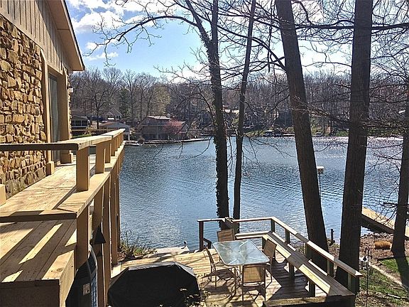 This spectacular lakefront home offers panoramic views of Sweetwater Lake from the wall of windows on the lake side of the home. Great open floor plan, eat-in Kitchen with Breakfast Bar, large Pantry. Formal Dining Room on main level flows into Family Room with wall of windows. Free standing wood burning fireplace. Laundry Room with shelving. Large Living Room on upper level again with wall of windows and floor to ceiling Brown County Stone fireplace. Lots of room for entertaining family and friends or to just sit back, relax and enjoy your time at the lake. Two Bedrooms with lake views and magnificent views of the lake from the upper Deck. Bonus Room upper level. Large private Dock for great summertime fun!! Easy unload to front door with easy walk to water.