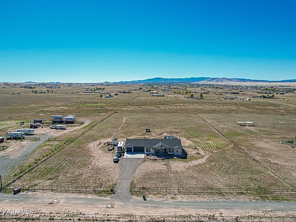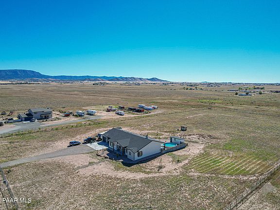 Welcome to this Incredible 2021 custom Antelope Meadows estate sitting on over 5 acres with breathtaking panoramic views in the privacy of north Prescott Valley. Why wait on a new build when you have your move-in ready dream home now! Would you love a pool, hot tub, and sauna? No problem we have you covered as this gem has it all!! 7903 Irwin Rd is a wondrous open split floor plan featuring 5 bedrooms, 3 full bathrooms, an office/den that could be a 6th bedroom, and an oversized 4 car garage perfect for a home gym or workshop! A glorious kitchen with a massive island, marble counters, custom cabinetry, walk-in pantry, stainless LG appliances, induction cooktop stove, and double oven. Lovely formal dining area with views. CONTINUED