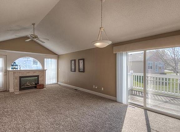 This maintenance provided oasis is in the kind of great neighborhood where people get together socially. There are numerous activities to enjoy if you desire. The home has two very large bedrooms. The master suite includes a large walk in closet, double vanities and a walk in shower. The second bathroom features a tub with shower. There is brand new carpeting, a fireplace, hardwoods in kitchen, and two decks to enjoy. Finish the huge basement as you choose. It is stubbed for a bath.