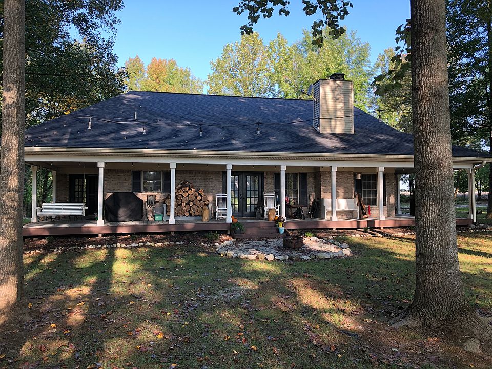 Over 8 Acres! Peace & Serenity! Remarkable 3 Bd 2 Ba Ranch w/ Fireplace, wrap around porch on secluded wooded lot with lake access and ownership. 30x50 pole barn for great storage w/ work bench & multi purpose use. Bedrooms are carpet & laminate in living/family room, new roof and furnace. Highly accessible off of HWY 62! Sq ft & rm sz approx.