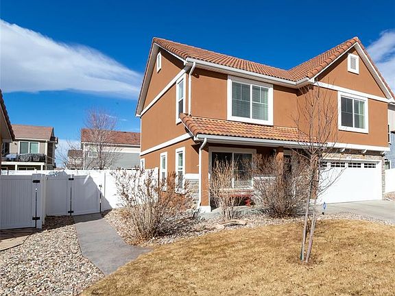 Welcome to your dream home! This well-maintained property offers a perfect blend of comfort, convenience, and luxury. Located in a desirable area, you can walk to open trails and open space and enjoy the beauty of nature right at your doorstep. The five-piece master bath is a luxurious feature that will make you feel like royalty. The walk-in closet in every bedroom provides ample storage space and adds a touch of sophistication to the home. The spacious kitchen is a chef's delight, complete with high-end stainless-steel appliances that are perfect for cooking and entertaining. The easy entry into the dining room and walk-out access to the large patio make it convenient to host dinner parties or simply enjoy a meal outdoors. The stucco exterior, quartz countertops, and Luxury Engineered Hardwood Floors give this home a modern and elegant touch. The Stamped Concrete Patio and Vinyl fencing add charm and character to the exterior, while the Wifi Sprinkler System makes lawn maintenance a breeze. The large and spacious backyard is fully landscaped and perfect for outdoor entertaining. The large patio is perfect for summer BBQ's and entertaining friends and family. Located near Fort Carson, Peterson, and Schriever Air Force Base, this home offers easy access to work and other amenities. Don't miss out on the opportunity to own this amazing home! Book your appointment today!